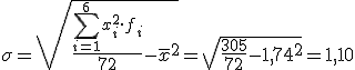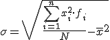 La segunda expresión es la que normalmente se suele utilizar ya que, si nos basamos en la tabla de frecuencias, basta añadir una nueva columna correspondiente a xi2·fi y totalizarla.